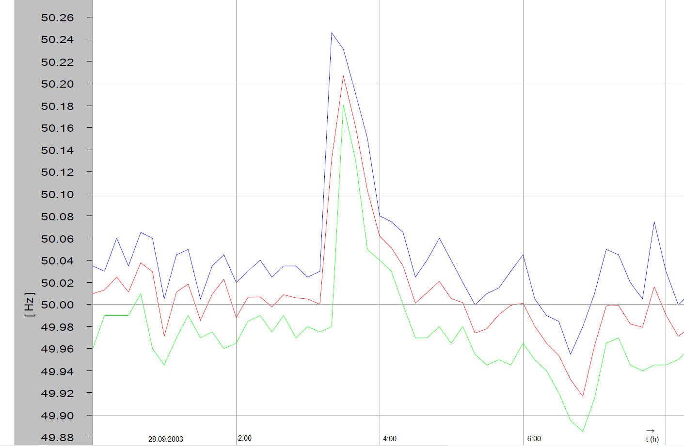 So hat sich die Netzfrequenz im verbliebene UCTE-Netz innerhalb kurzer Zeit wieder normalisiert.